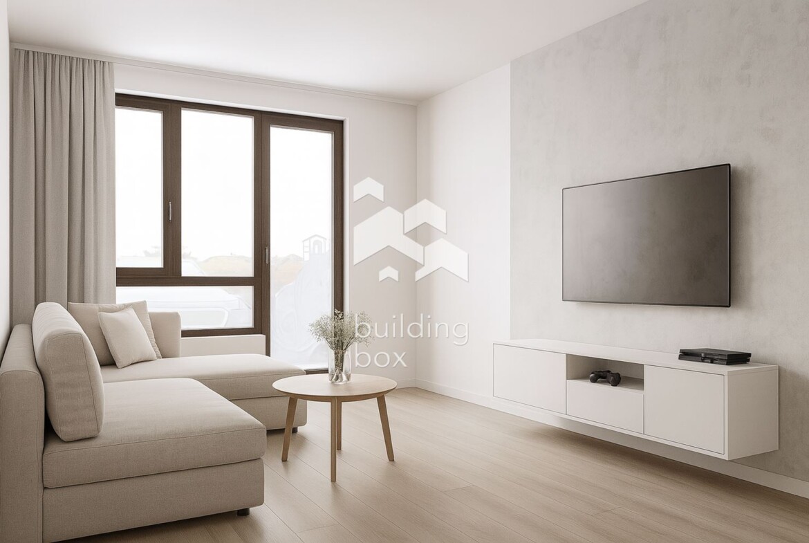 РАЗПРЕДЕЛЕНИЕ: Апартаментът се състои от входно антре, всекидневна с кухненски бокс, спалня и баня с тоалетна . Имота се продава по БДС.